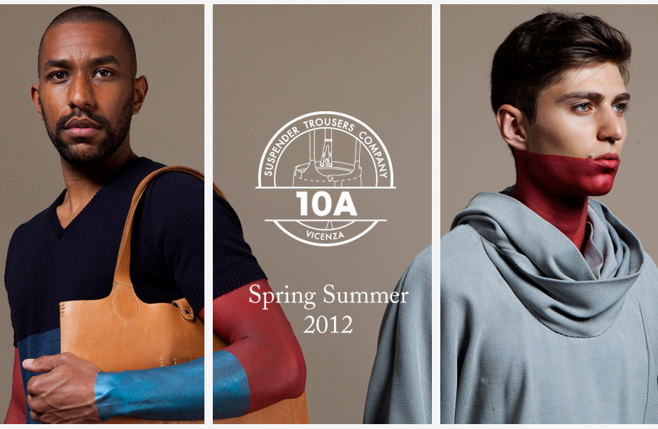 The 10A Suspender Trousers Company is created by two young designers, Daria Dazzan and Matteo Cibic. Daria graduated from Royal Antwerp Academy and Matteo is a product designer and art director. These two joined together to create a tailoring label called AAAAAAAAAA™ in 2008, making only 10 made-to-order suspender trousers every month. 10A is their ready-to-wear label after their success. The 10A label remains to be high quality and totally Italian, using Italian quality fabrics and being hand-made in Italy.