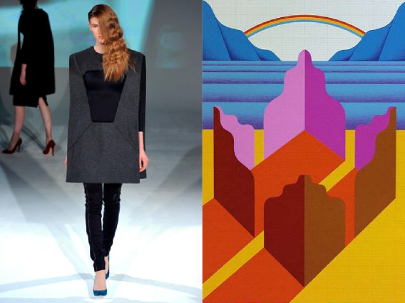 For every upcoming trend, there is always a counter trend. So as 3D becomes hotter than ever, some choose to reverse the aesthetics back to 2D. German artist Jens Lausen put traditional landscape painting into linear shapes. The simplistic and abstract painting is highlighted by sharp lines and bold colours. Hussein Chalayan, Rei Kawakubo and Vivienne Westwood staged 2D fashion pieces in the Paris runway that finished last week. These three designers have always been the innovators in fashion, they challenge mainstream ideas and create new silhouette. These pieces are their revolution against our 3-dimension obsession. Lo and behold, will this be a seed for the next trend?