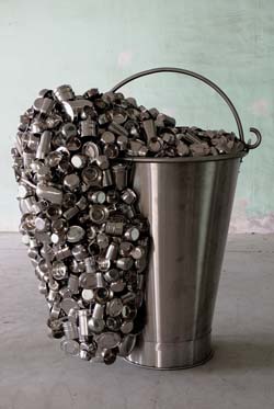 Subodh Gupta, one of the best contemporary Indian artists, is known for creating installations out of everyday objects. The chosen items are usually symbols of everyday Indian life, such as steel tiffin boxes used by millions to carry their lunch, thali pans and bicycles etc. He uses them to build impressive sculptures to address contemporary issues like waste, nuclear energy and industrialization. Like French conceptualist Marcel Duchamp, he elevated those ordinary items into art objects.