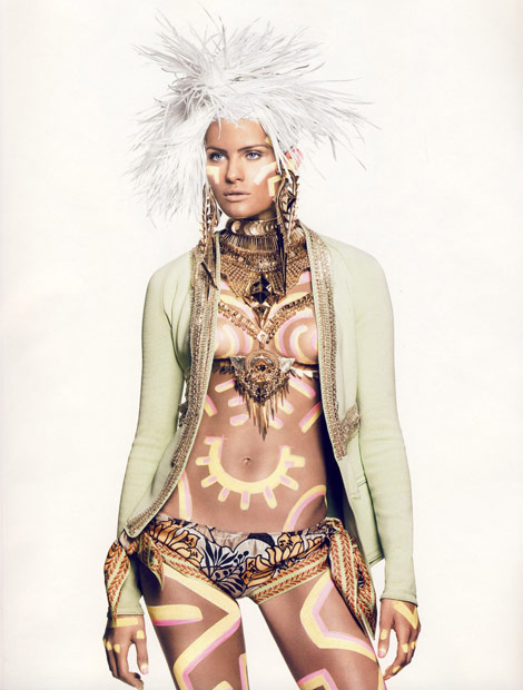 Cross culture, mix culture and multi culture have never disappeared from global trend. Besides, it will stay as long as the world will be together as one. The mixture of identities topic has been incorporating to various kinds of creativity and artistic idea. It is the world we are living everyday and the future world that everybody can exchange their own culture they have been carrying and traveling to any place in this world. To summarize into beauty trend, the future culture shock could be something extreme like body paint. When identities become more frequent. No one is similar to another. Just paint it over , make your face up as a work of art, it might be another beauty solution to identify ourselves.